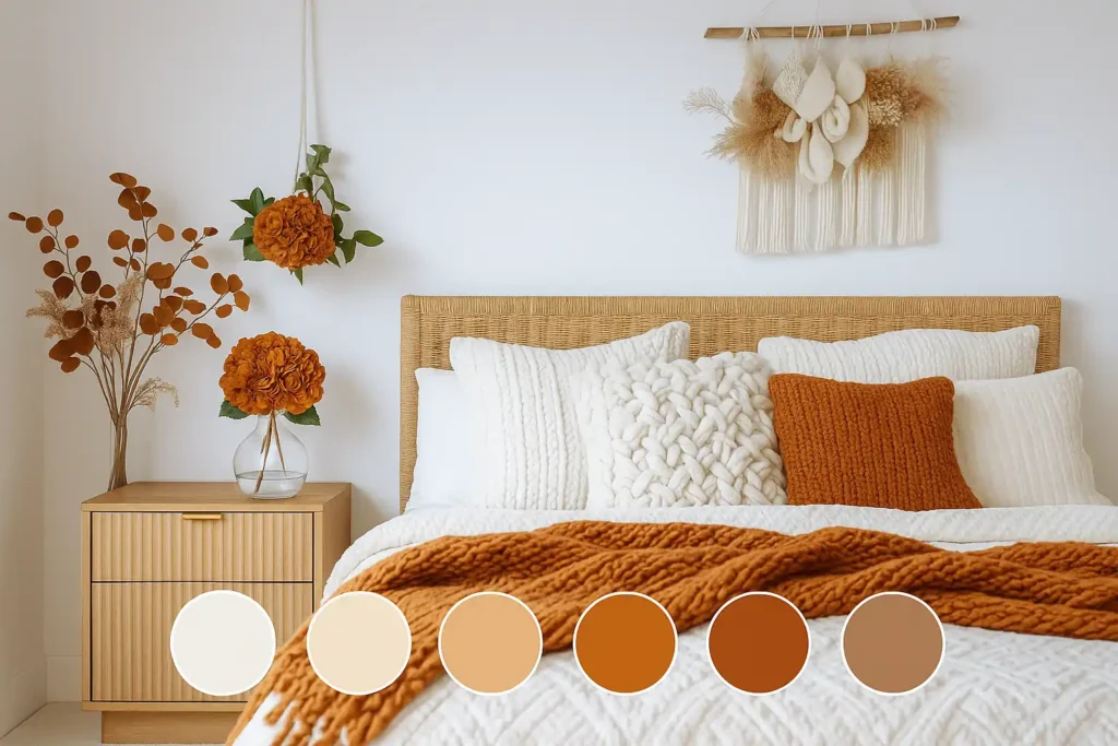 And to start, let’s talk about something that sets the mood for the entire space: color palettes. The right fall-inspired hues can instantly make your bedroom feel warm, stylish, and ready for autumn.